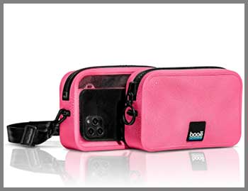 You can find those clear plastic phone pouches on Amazon for $10. These are fine for a single use, but they are flimsy. They often leak at the plastic clamp closure after a few uses and offer zero storage for keys or wallets. The Booe bag is a piece of luggage that will last for years; the cheap pouches are disposable. Booe also allows you to carry more than just a phone, consolidating your pockets into one secure spot.