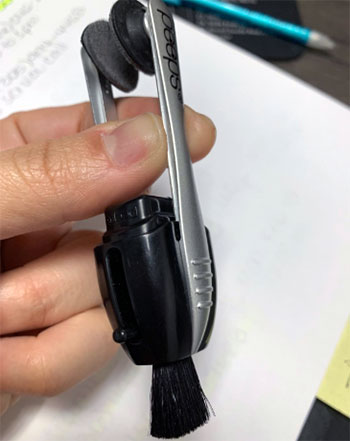 The design is clever: it has a retractable goat-hair brush on one end and the “tongs” with carbon pads on the other. The main body acts as a recharging station for the pads.